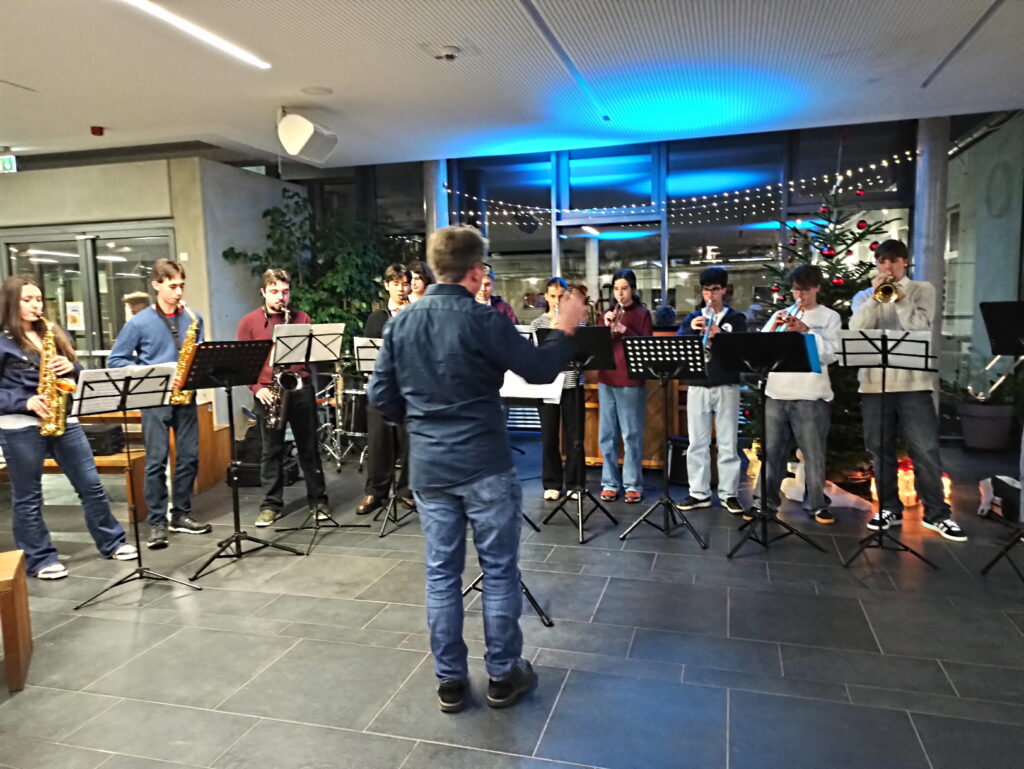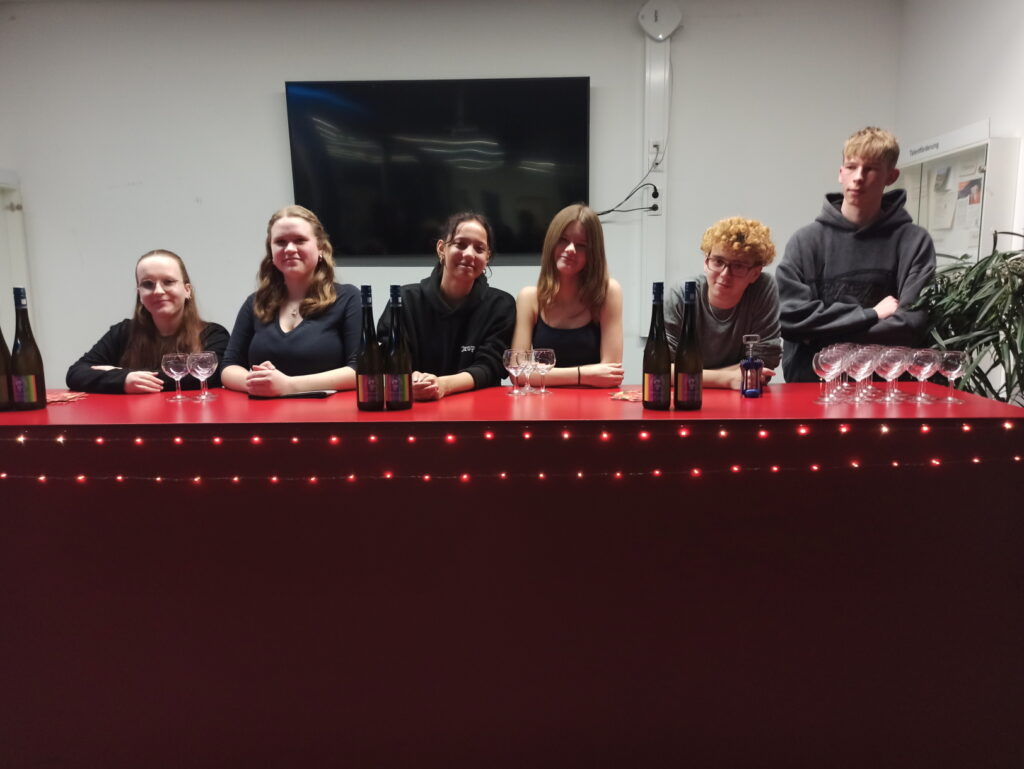 Die Bigband spielte und der Jubiläumswein konnte gekostet werden. Vielen Dank für Schülerinnen und Schüler, die die Vinissage durch ihre Mitarbeit unterstützt haben.