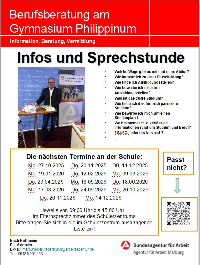 Das Gymnasium Philippinum bietet in Kooperation mit der Berufsberatung der Agentur Marburg folgenden Service an: